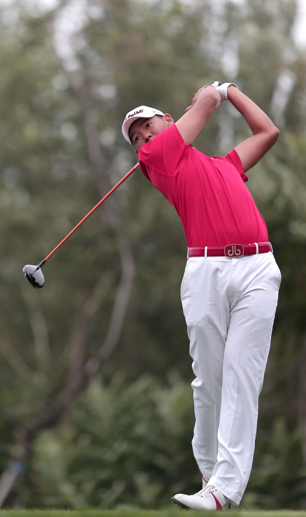 2013年9月9日,香港隊(duì)選手黑純一在比賽中。當(dāng)日,在遼寧省沈陽市進(jìn)行的第十二屆全運(yùn)會高爾夫球男子團(tuán)體比賽中,香港隊(duì)最終以851桿的總成績奪得亞軍。新華社記者姚劍鋒攝