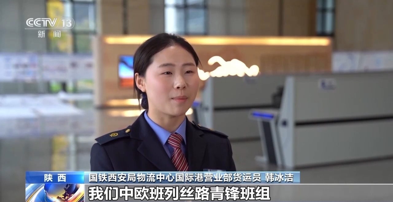 國鐵西安局物流中心國際港營業(yè)部貨運(yùn)員 韓冰潔:下一個(gè)五年,我們中歐班列絲路青鋒班組要把更多中國制造更好更快發(fā)到全球。
