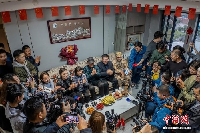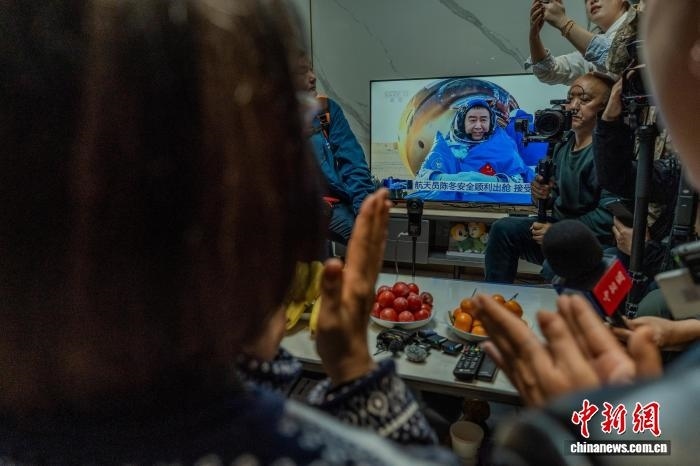 圖為陳冬父母及親友等鼓掌歡迎航天員陳冬順利出艙。中新社記者 李超慶 攝