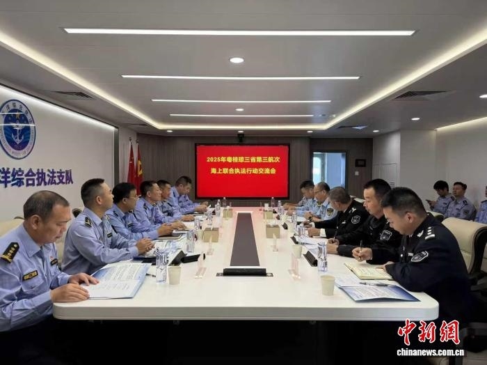 11月12日,粵桂瓊?cè)?區(qū))第三次海上聯(lián)合執(zhí)法行動交流會在中國漁政44002船召開。廣東省海洋綜合執(zhí)法總隊(duì) 供圖