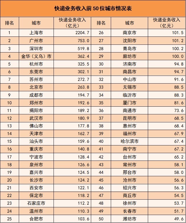 注:快遞處理量=快遞業(yè)務量+快遞投遞量