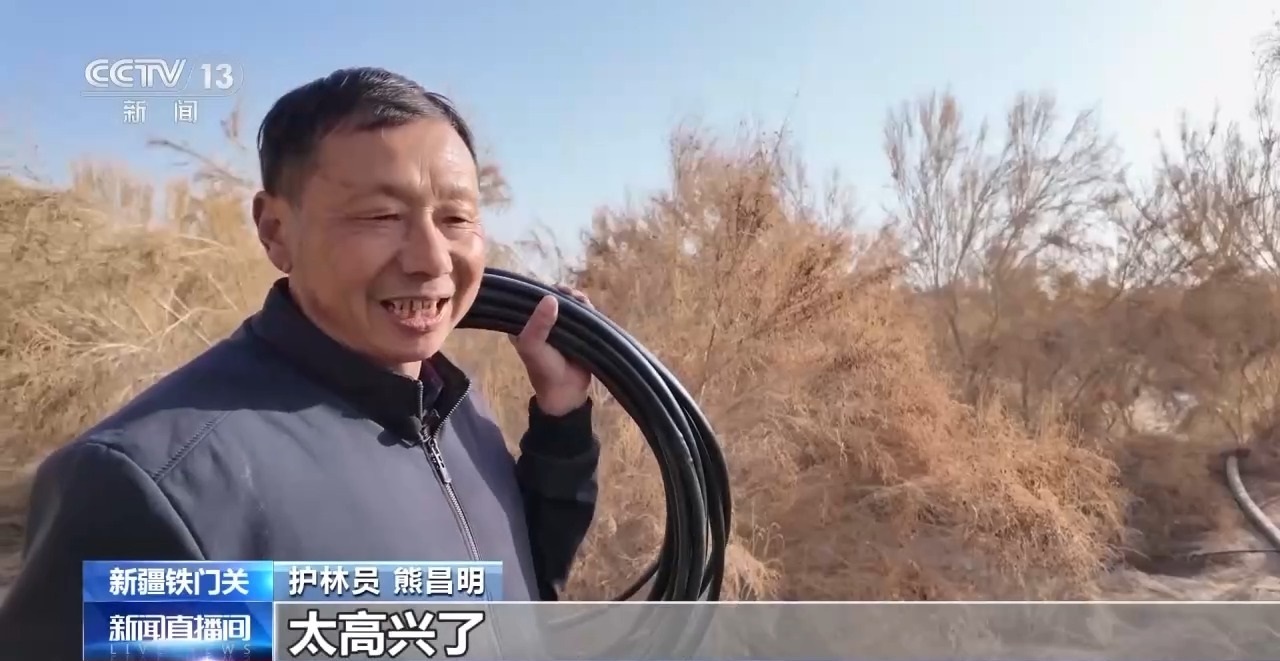 眼下這個季節(jié),正是冬季巡林最忙碌的時候,新疆鐵門關(guān)市營盤鎮(zhèn)53歲的護林員熊昌明,每天早晨都會和同事在泵房會合,一起去檢修梭梭林里的滴灌帶。
