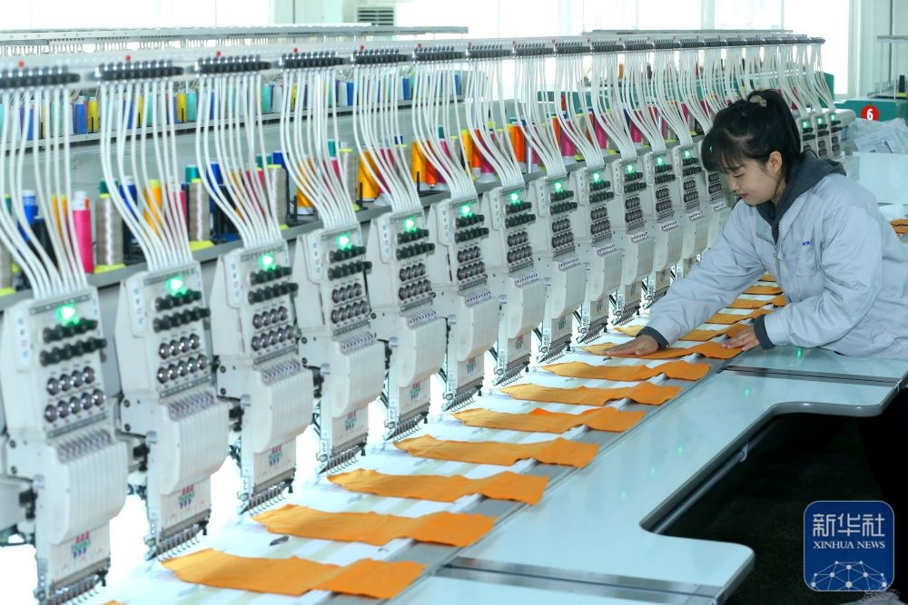 ↑ 12月15日,山東省青島市即墨區(qū)即發(fā)集團員工在生產(chǎn)服裝繡花產(chǎn)品。新華社發(fā)(梁孝鵬攝)