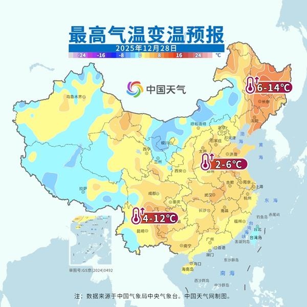 這場年尾超級大回暖正在席卷我國大部地區(qū),并將持續(xù)至29日。明后天,回暖幅度和范圍進一步升級,北方地區(qū)明天氣溫普遍達到高點,南方地區(qū)將在后天(29日)前后迎來過程氣溫高點。其中明天,最高氣溫0℃線將同期少見地挺進東北,并北抬至吉林中部,黃淮南部到江南普遍在15℃以上,華南也將重返20℃以上,短袖有了重新出場的機會。