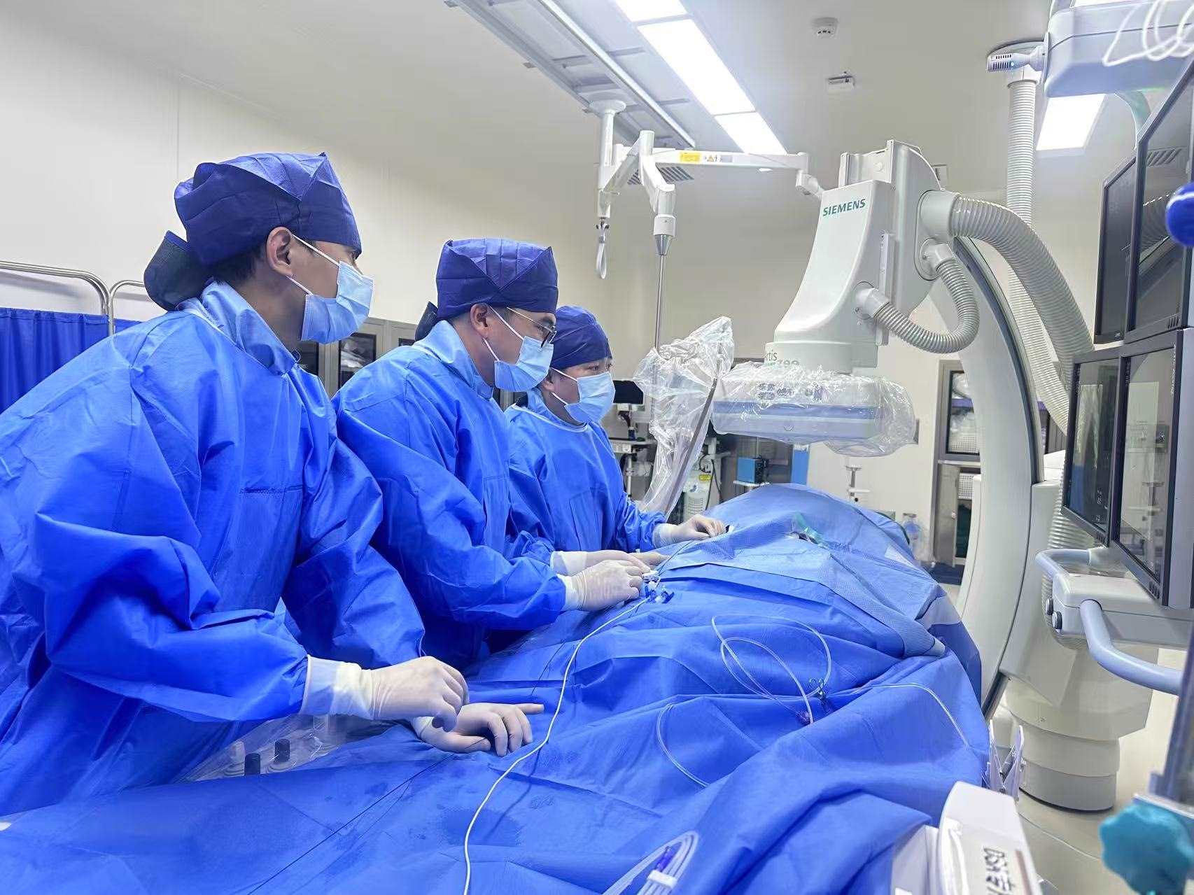 中山大學(xué)附屬第一醫(yī)院血管外科常光其教授、李梓倫教授團(tuán)隊(duì)順利開展中國大陸首例EKOS超聲波輔助溶栓系統(tǒng)治療肺動(dòng)脈栓塞。新華網(wǎng)發(fā)(受訪者供圖)