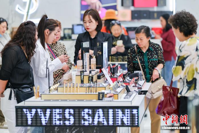 1月18日,顧客在cdf??趪H免稅城選購化妝品。海南自貿(mào)港封關首月,離島免稅市場火爆。 中新網(wǎng)記者 駱云飛 攝