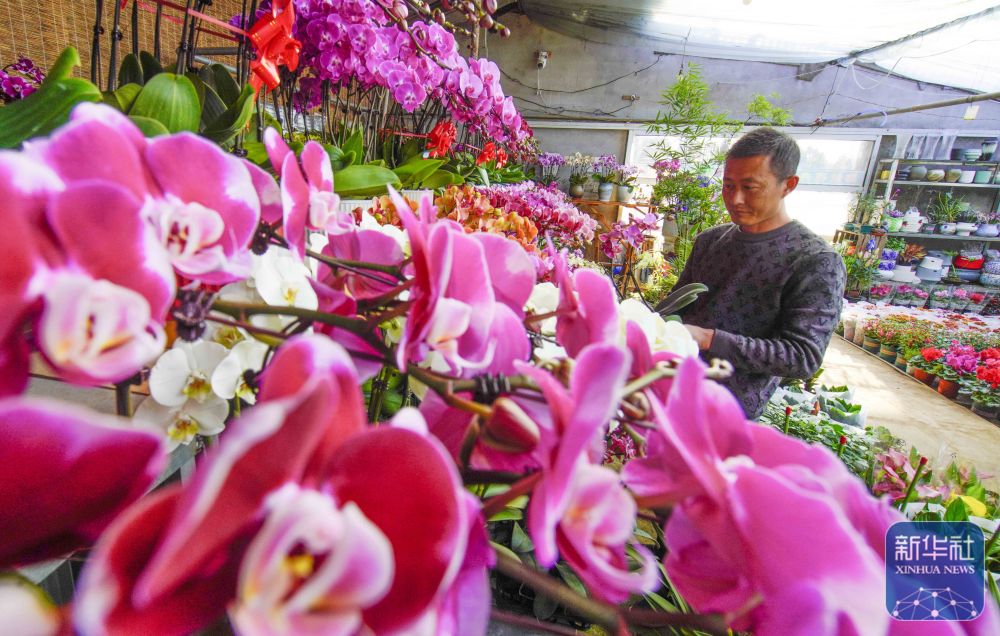 ↑1月22日,河北省遵化市遵化鎮(zhèn)張家坎村農(nóng)民在暖棚管護(hù)花卉,準(zhǔn)備供應(yīng)節(jié)日市場(chǎng)。新華社發(fā)(劉滿倉攝)