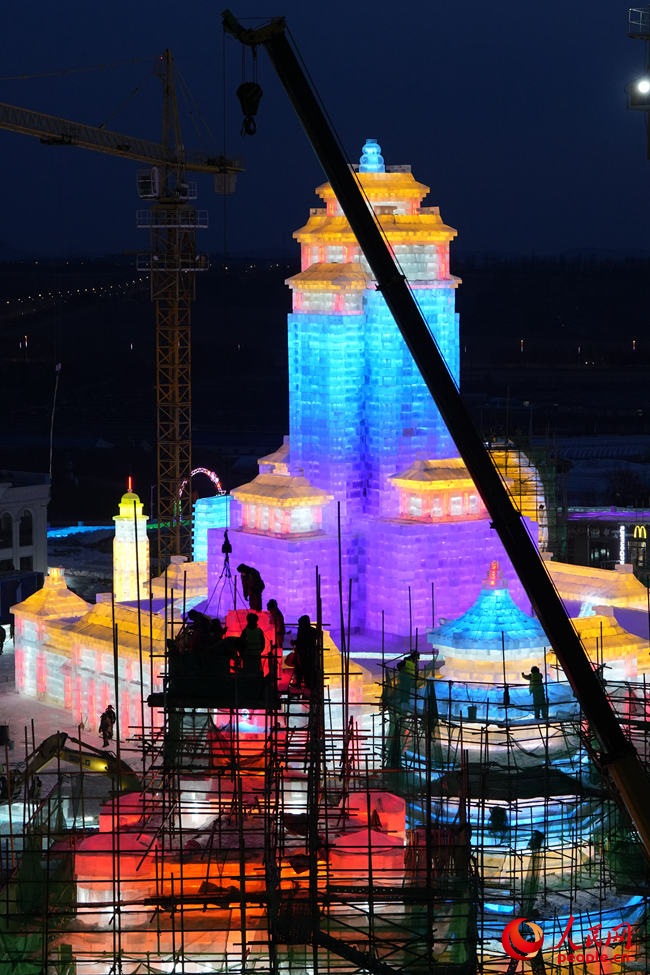 冰為磚、水為泥、燈為飾,打基礎(chǔ)、做鋼架、砌冰墻……最忙時(shí),曲超和5500余名工人夜以繼日,在攝氏零下的氣溫中“玩冰嬉雪”,睫毛上全是凝結(jié)的霜花?!氨┦嵌虝旱乃囆g(shù),一旦進(jìn)入冰雪施工季,都得緊抓時(shí)間,盡量把施工時(shí)間壓縮到最短,這樣留給游客欣賞的時(shí)間就會(huì)更長(zhǎng)?!鼻f(shuō)。