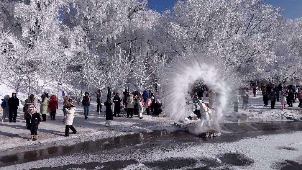 寒冬時(shí)節(jié),吉林省吉林市松花江畔常現(xiàn)“忽如一夜春風(fēng)來(lái),千樹(shù)萬(wàn)樹(shù)梨花開(kāi)”的霧凇奇景。