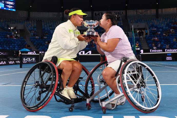 北京時間1月30日,2026澳網輪椅網球女雙決賽,頭號種子、中國組合王紫瑩/李曉輝以6-4、6-3擊敗2號種子朱珍珍/上地結衣,實現(xiàn)衛(wèi)冕。中國選手朱珍珍和搭檔上地結衣收獲亞軍。