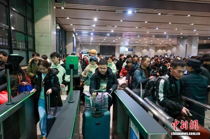 2月2日,乘客在北京西站排隊(duì)進(jìn)站乘車。中新社記者 賈天勇 攝