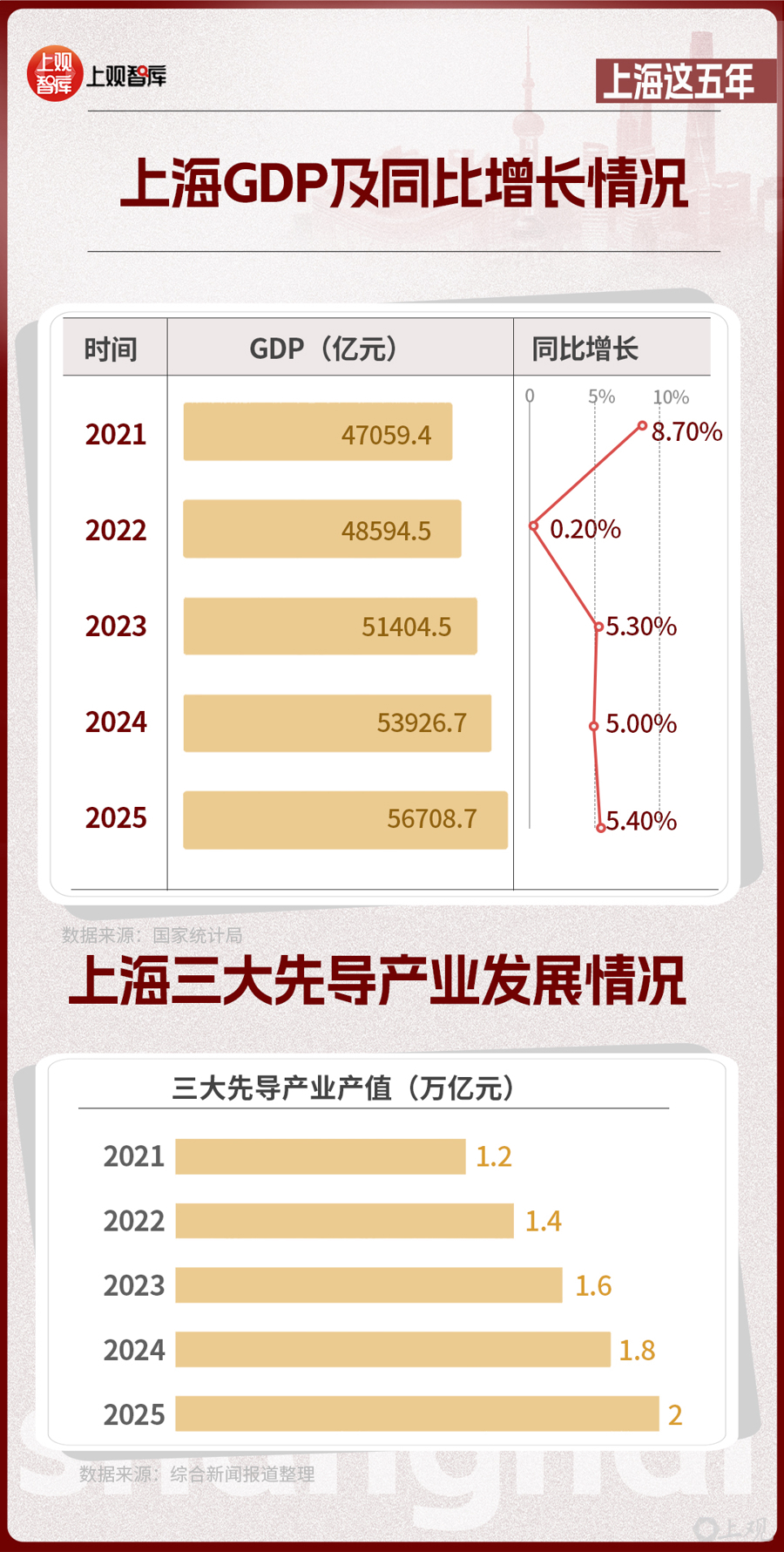 2023年,上海成為全國首個經(jīng)濟總量突破5萬億元的城市;2025年,上海GDP突破5.6萬億元,向下一個里程碑進發(fā)。