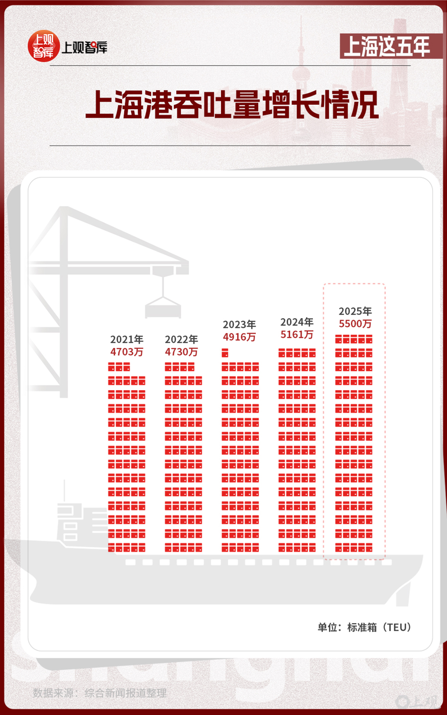 2024年,上海浦東國際機場首次排名全國旅客吞吐量第一,榮登中國最繁忙的機場。也是在這一年,上海港成為全球首個年吞吐量超過5000萬標(biāo)準(zhǔn)箱的世界大港。