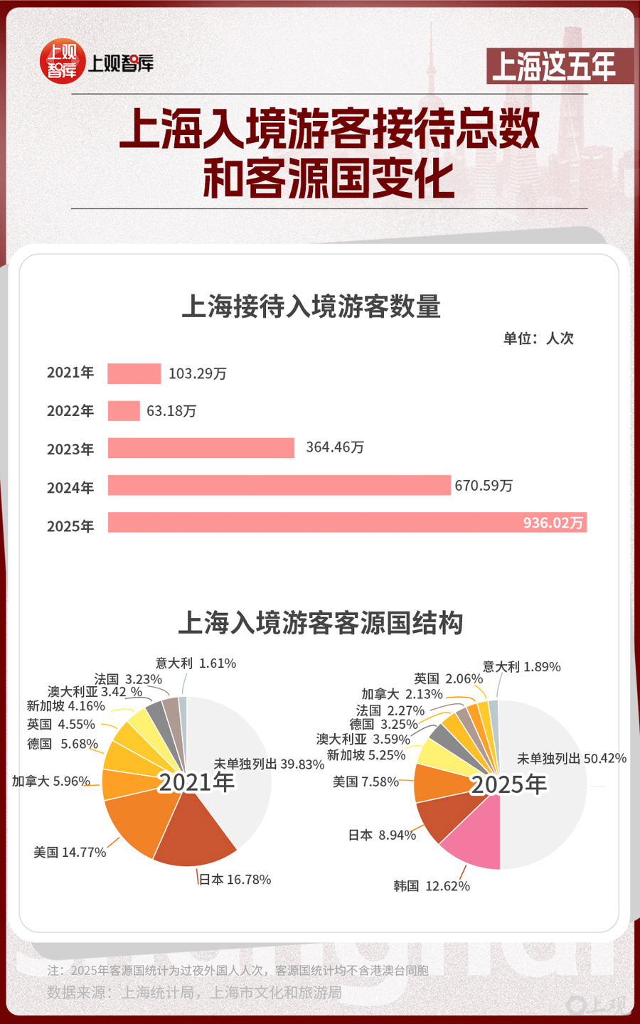 開放的上海,在全球的魅力日益提升。乘著免簽政策東風(fēng),上海在入境游賽道走出強勁上升曲線,“中國入境游第一站”吸引力持續(xù)攀升。去年全年,上海接待入境游客總量936.02萬人次,創(chuàng)下歷史新高,成為全球游客感知中國文化、體驗都市魅力的首選目的地。