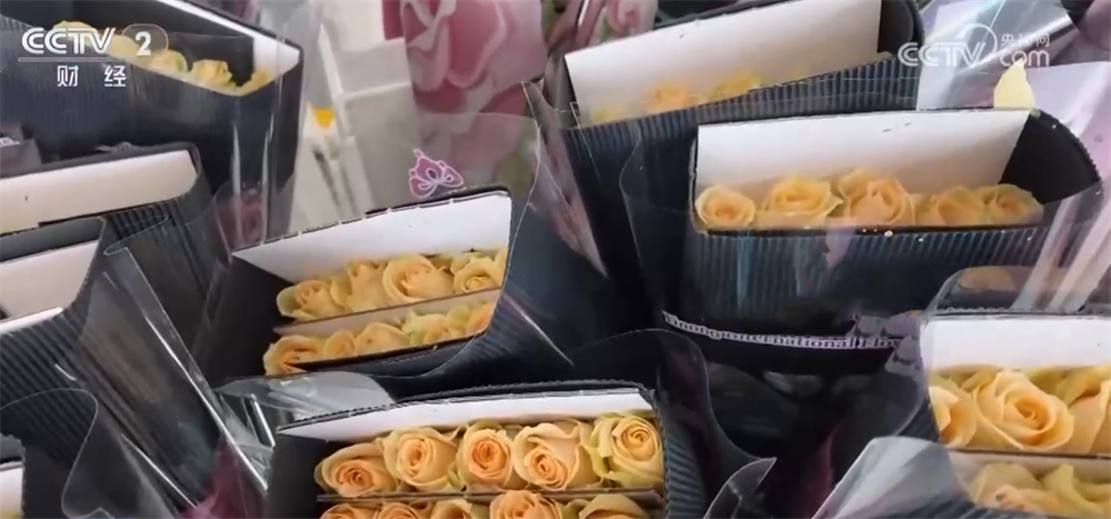 商家介紹,本月出口鮮花的發(fā)貨量是日常的五倍,目前訂單已經(jīng)排到年后。新鮮采摘的鮮花在出口商車間完成分揀、包裝、保鮮等處理后,由冷鏈送往機場過關出口,整個流程最快不到20小時就能完成。