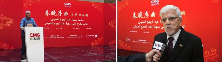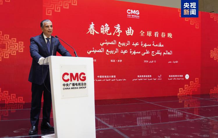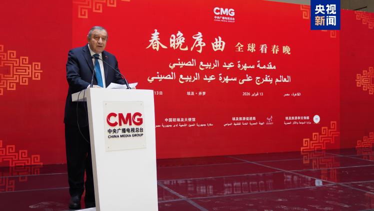 當(dāng)?shù)貢r(shí)間2月13日,“春晚序曲 全球看春晚”埃及專場(chǎng)活動(dòng)在開羅舉行。本次活動(dòng)由中國(guó)中央廣播電視總臺(tái)與中國(guó)駐埃及大使館、埃及旅游和文物部、埃及旅游促進(jìn)局共同主辦。中宣部副部長(zhǎng)、中央廣播電視總臺(tái)臺(tái)長(zhǎng)慎海雄作視頻致辭。中國(guó)駐埃及大使兼駐阿盟全權(quán)代表廖力強(qiáng),埃及政府代表、埃及外交部亞洲事務(wù)部助哈姆扎,埃及前總理沙拉夫出席活動(dòng)并致辭。埃及考古學(xué)家、前文物部長(zhǎng)哈瓦斯,埃及旅游促進(jìn)局主席代拉提芙,埃及外交事務(wù)委員會(huì)執(zhí)行主任伊扎特,巴德爾大學(xué)副校長(zhǎng)巴斯歐尼,阿盟非洲事務(wù)司司長(zhǎng)布斯坦吉,阿盟理事會(huì)秘書處主任法赫米等中埃兩國(guó)政界、學(xué)術(shù)界、媒體界代表200余名嘉賓參加活動(dòng)。