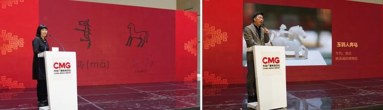 在“馬元素展示”環(huán)節(jié),北京大學(xué)、上海外國(guó)語(yǔ)大學(xué)的專家分別圍繞總臺(tái)春晚主標(biāo)識(shí)“騏驥馳騁”和中埃兩國(guó)博物館的豐富館藏,現(xiàn)場(chǎng)分享中華文明與古埃及文明中馬元素的文化意象與精神意蘊(yùn)。