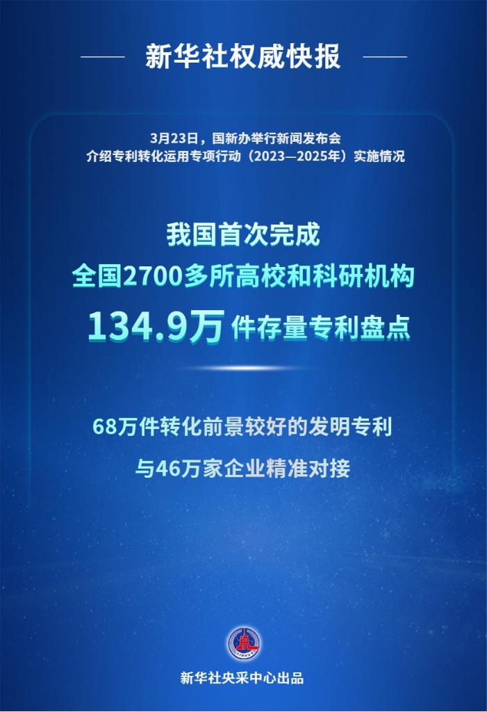 3月23日,國新辦舉行新聞發(fā)布會介紹專利轉(zhuǎn)化運用專項行動(2023—2025年)實施情況。