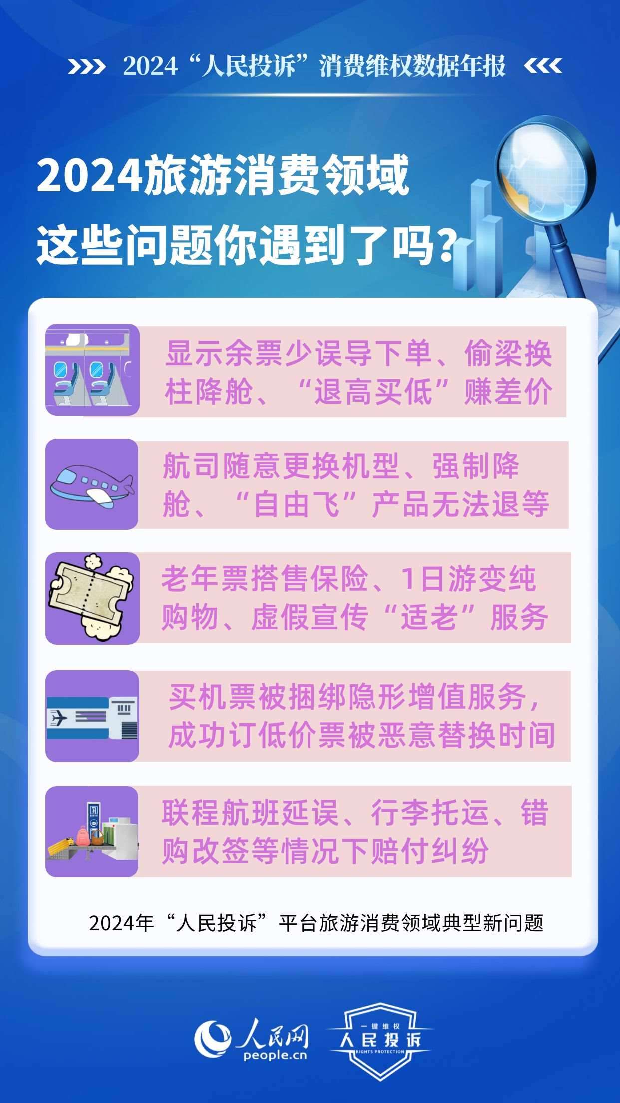 2024年,旅游消費(fèi)持續(xù)火爆,以舊換新“換”出消費(fèi)新活力,直播電商“品質(zhì)化”轉(zhuǎn)型,新能源汽車購銷兩旺……在消費(fèi)市場熱力持續(xù)提升的背景下,旅游產(chǎn)品退訂難,電商促銷虛假價(jià)保,直播間營銷違規(guī),車險(xiǎn)車貸服務(wù)欺詐,AI培訓(xùn)貨不對(duì)板等消費(fèi)侵權(quán)問題引發(fā)廣泛關(guān)注。“人民投訴”發(fā)布年報(bào)帶您回顧這一年來,平臺(tái)消費(fèi)維權(quán)熱點(diǎn)和入駐企業(yè)積極處理糾紛的舉措。