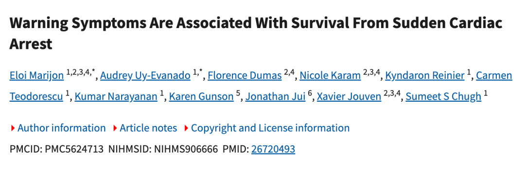 2016《內(nèi)科學(xué)年鑒》刊發(fā)的一篇文章,首次大規(guī)模證實心臟驟停前存在可識別的預(yù)警癥狀,打破了“猝死毫無征兆”的傳統(tǒng)認(rèn)知。研究納入的839名心臟驟?;颊咧?,430名有先兆癥狀,占51%,主要為:胸痛、呼吸困難、頭暈。①