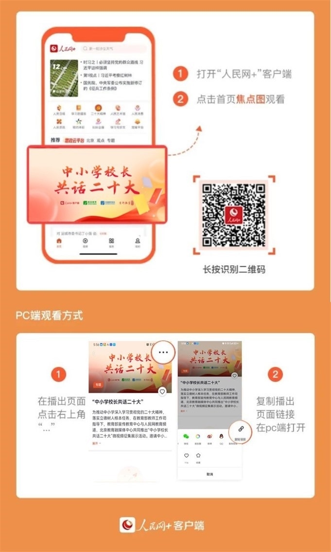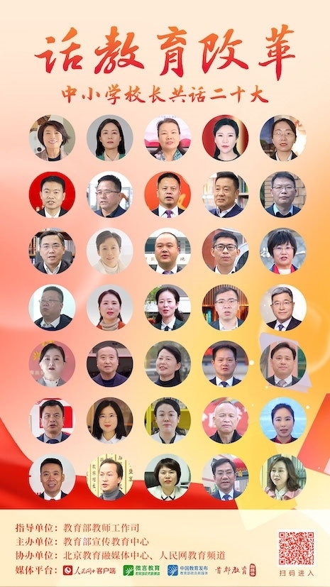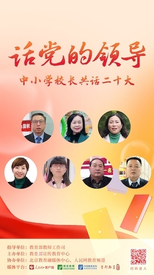 5月12日起,“人民網(wǎng)+”客戶端推出“中小學校長共話二十大”專題節(jié)目,每日11:00上新,圍繞黨的領(lǐng)導、鑄魂育人、教育改革、教育公平、強師興校等話題述成績、言感悟、談現(xiàn)狀、話未來,切實把黨的二十大精神轉(zhuǎn)化為辦學治校、教書育人的實際行動。讓我們一起傾聽全國百位中小學校長共話二十大,共同描繪教育事業(yè)發(fā)展的新藍圖。