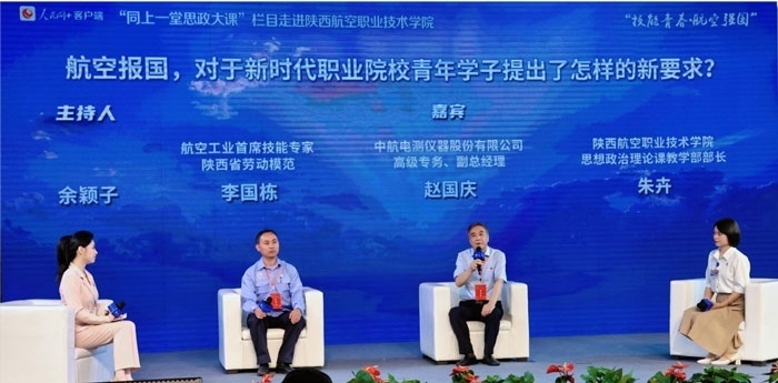 人民網(wǎng)漢中5月19日電 (記者林露 崔競文 王鑫)夢想閃光,青春遠(yuǎn)航。18日,“人民網(wǎng)+”客戶端“同上一堂思政大課”欄目走進(jìn)陜西航空職業(yè)技術(shù)學(xué)院,在校園內(nèi)開展了豐富多彩的思政實(shí)踐系列活動(dòng),與來自全國各地的職業(yè)院校、航空領(lǐng)域代表企業(yè)的嘉賓共話“技能青春·航空強(qiáng)國”。