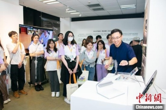 當(dāng)日,香港大學(xué)生參觀了松江廣富林遺址公園后,來到上海視覺藝術(shù)學(xué)院與該校學(xué)生結(jié)伴交流,參觀該校設(shè)計學(xué)院和新媒體藝術(shù)學(xué)院畢業(yè)作品展。