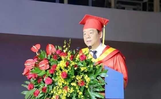北京工商大學(xué)校長(zhǎng)郭建華在2023屆畢業(yè)典禮上發(fā)表講話。校方供圖