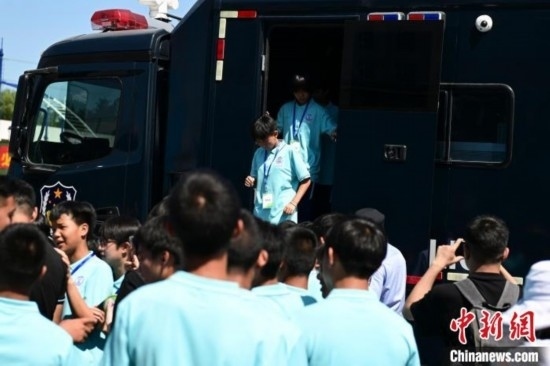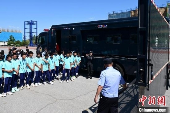 由北京市公安局支教民警組建并執(zhí)教的貴州黔西南州青少年校園足球男、女隊員共34人來到北京參加夏令營活動。今天,隊員們觀看特警訓(xùn)練及警犬演示,現(xiàn)場體驗警械武器和警車等裝備使用,感受首都公安風采。