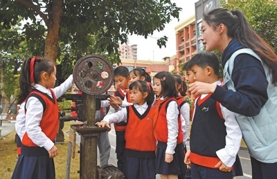 2022年3月,九龍坡區(qū)教委印發(fā)《關(guān)于推進(jìn)中小學(xué)集團(tuán)化辦學(xué)的意見(jiàn)》,謝家灣金茂小學(xué)成為謝家灣教育集團(tuán)一體化辦學(xué)成員校。謝家灣金茂小學(xué)的前身是重慶建設(shè)工業(yè)(集團(tuán))有限公司子弟學(xué)校,約1/3的教師曾是工廠職工。“基于學(xué)校情況,我們強(qiáng)調(diào)培養(yǎng)學(xué)生養(yǎng)成熱愛(ài)勞動(dòng)的習(xí)慣,形成陽(yáng)光心態(tài)?!敝x家灣金茂小學(xué)黨總支書(shū)記楊永財(cái)指著校園內(nèi)擺放的老舊機(jī)床說(shuō),“重慶建設(shè)工業(yè)(集團(tuán))有限公司發(fā)展歷史厚重,學(xué)校積極挖掘紅色資源,給孩子們講好革命歷史,上好思政課?!?/p>