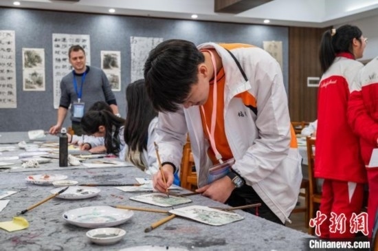 3月19日,香港學(xué)生學(xué)習(xí)國(guó)畫。唐哲 攝