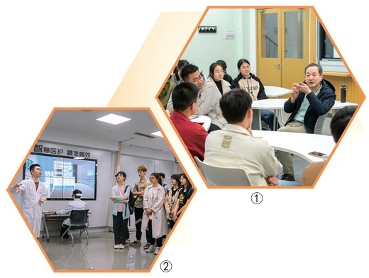圖①:復(fù)旦大學(xué)“強(qiáng)國(guó)之路”思政大課小班討論課上,航空航天系教授艾劍良(右一)與學(xué)生交流。郭劍斌攝(人民視覺) 圖②:現(xiàn)場(chǎng)教學(xué)環(huán)節(jié),復(fù)旦大學(xué)上海醫(yī)學(xué)院學(xué)生在復(fù)旦大學(xué)附屬中山醫(yī)院了解智能醫(yī)療領(lǐng)域發(fā)展。張洪寅子攝(人民視覺)