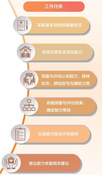隨著老齡化進程加快,開展老年人能力評估,成為許多養(yǎng)老服務相關工作的一個基礎環(huán)節(jié)?!袄夏耆诵枰媪私庾约旱哪芰?,養(yǎng)老機構根據(jù)能力評估制定照護方案,政府根據(jù)照護等級確定補助標準,推廣普及長期護理險以失能等級評估為依據(jù)……養(yǎng)老服務工作方方面面都需要對老年人進行能力評估?!笔⑺济粽f。