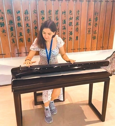 來(lái)自俄羅斯的伊麗莎白在彈古琴。(本文配圖由中外語(yǔ)言交流合作中心提供)