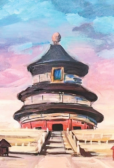 夕陽余暉中,新西蘭華裔青少年們在天壇祈年殿紅墻邊席地而坐,揮動畫筆,捕捉眼前美景。“夕陽下祈年殿更顯壯麗,我希望通過我的畫筆展現(xiàn)出它的雄偉?!眳⒃L團學(xué)生秦曉寓說。