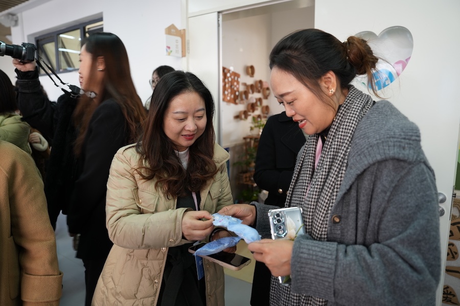 劉曉菲表示,利用幼兒園走廊寬的優(yōu)勢,把一樓打造成閱讀長廊,二樓藝術(shù)長廊,包括扎染、剪紙、造紙、拓印等非遺項目,三樓創(chuàng)造長廊,包括卡卡建構(gòu)、炫彩建構(gòu)、扭扭建構(gòu)、墻釘游戲、機(jī)械探索等。