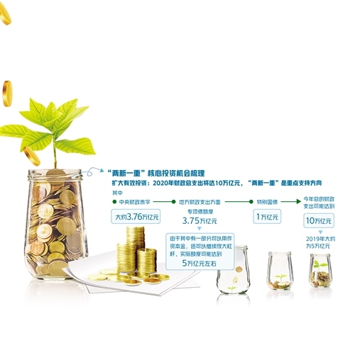 為重點(diǎn)支持既促消費(fèi)惠民生又調(diào)結(jié)構(gòu)增后勁的“兩新一重”建設(shè),根據(jù)《政府工作報(bào)告》,今年特別安排地方政府專項(xiàng)債券3.75萬億元,比2019年有所增加;另有抗疫特別國債1萬億元,資金用途共涉及6個領(lǐng)域,其中有部分也指向“兩新一重”建設(shè)領(lǐng)域。