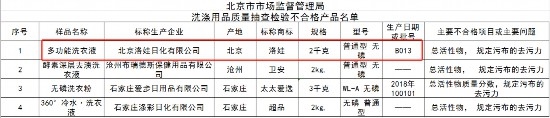 公告顯示,北京市市場監(jiān)督管理局2020年6月24日公示的洗滌用品質量抽檢信息中,標稱生產企業(yè)“北京市洛娃日化有限公司”,標稱商標“洛娃”,規(guī)格“2千克”,型號“普通型無磷”,生產日期或批號“B013”的多功能洗衣液,不合格項目“總活性物,規(guī)定污布的去污力”。該產品被抽檢場所為“密云縣密云鎮(zhèn)億源來商店”,現(xiàn)“北京市洛娃日化有限公司”聲稱該產品為假冒其注冊商標及廠名、廠址的產品。