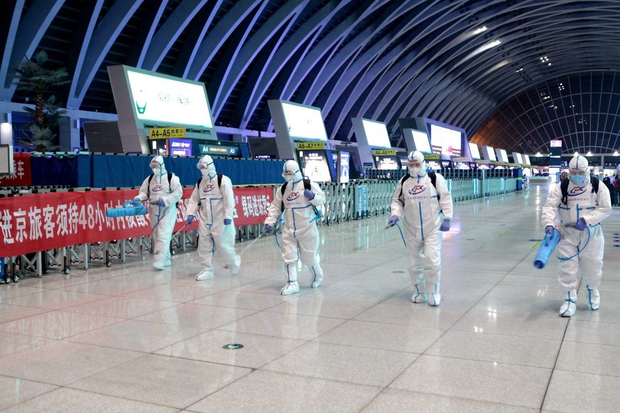 天津西站候車室開展防疫工作。北京局供圖
