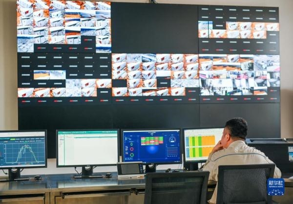 4月20日,在達拉特光伏發(fā)電應用領跑基地,工作人員在運維中心主控室工作。新華社記者 王澤聰 攝