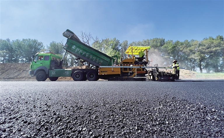8月5日,施工人員正在鋪設(shè)瀝青。記者從中國二冶集團(tuán)內(nèi)蒙古分公司和林格爾新區(qū)金盛快速路北段-杭蓋路連接線項(xiàng)目部了解到,該項(xiàng)目正在鋪設(shè)瀝青,同時(shí)進(jìn)行智能交通以及道路交通標(biāo)識(shí)標(biāo)線施劃等工作,施工完畢后將于近日通車。該路段通車后,將有效緩解呼和浩特南部城區(qū)出城交通壓力,方便群眾出行。(記者 孟和朝魯 攝)