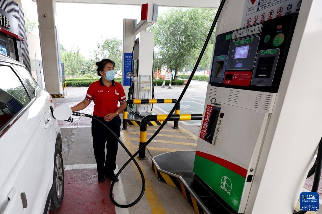 8月9日,江蘇南京一家加油站工作人員給汽車(chē)加油。新華社發(fā)(方東旭 攝)
