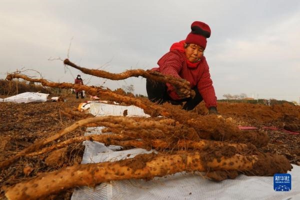 時下,河南省焦作市溫縣種植的鐵棍山藥進入收獲季,當?shù)剞r(nóng)民忙著采收、加工、銷售。