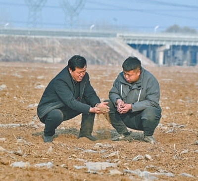 河北省永清縣劉街鄉(xiāng)農(nóng)戶在休耕地塊上查看土壤情況。 劉欣羽攝