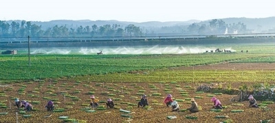 云南省硯山縣平遠(yuǎn)鎮(zhèn)農(nóng)民在移栽冬季輪作蔬菜。 王國禮攝
