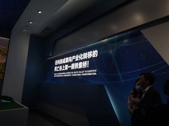 位于科學(xué)城的松山湖材料實(shí)驗(yàn)室,是廣東省第一批省實(shí)驗(yàn)室之一?!霸诳萍汲晒虍a(chǎn)業(yè)化轉(zhuǎn)移的死亡谷上架一座鐵索橋!”這句話就“印”在松山湖材料實(shí)驗(yàn)室的展廳內(nèi)。