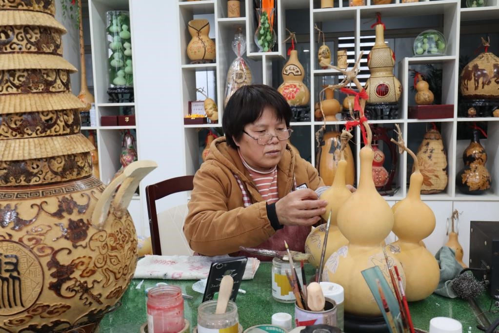 記者在一處加工點(diǎn)看到,今年41歲的村民李三紅正在趕制一批刻有“吉祥如意”字眼的葫蘆。李三紅10多年前從零開始學(xué)習(xí)烙刻葫蘆,現(xiàn)已成為技術(shù)骨干?!白鲆粋€(gè)葫蘆能掙六七十塊錢,抓緊點(diǎn)一天能做三個(gè)?!崩钊t說。