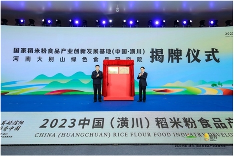 “國家稻米粉食品產(chǎn)業(yè)創(chuàng)新發(fā)展基地(中國·潢川)”“河南大別山綠色食品研究院”揭牌(主辦方供圖)