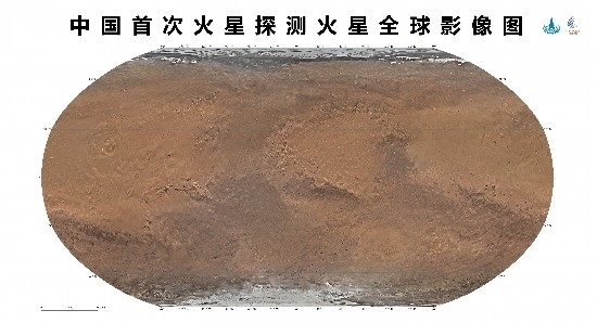 人民網(wǎng)北京4月24日電 (記者趙竹青、王震)記者從國(guó)家航天局獲悉,4月24日,在2023年“中國(guó)航天日”主場(chǎng)活動(dòng)啟動(dòng)儀式上,國(guó)家航天局和中國(guó)科學(xué)院聯(lián)合發(fā)布了中國(guó)首次火星探測(cè)火星全球影像圖。本次發(fā)布的影像圖為彩色,包括按照制圖標(biāo)準(zhǔn)分別制作的火星東西半球正射投影圖、魯賓遜投影圖和墨卡托投影加方位投影圖,空間分辨率為76米,將為開(kāi)展火星探測(cè)工程和火星科學(xué)研究提供質(zhì)量更好的基礎(chǔ)底圖。天問(wèn)一號(hào)任務(wù)獲取的包括影像圖在內(nèi)的一批科學(xué)探測(cè)數(shù)據(jù),將為人類深入認(rèn)知火星作出中國(guó)貢獻(xiàn)。