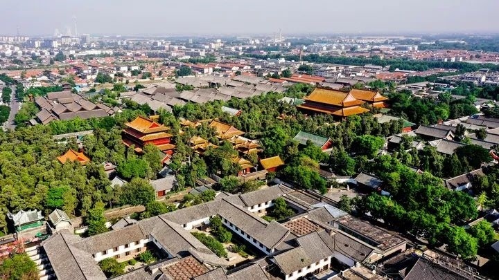 這是2023年6月8日無(wú)人機(jī)航拍的曲阜市孔廟、孔府及周邊城市風(fēng)貌。新華社記者 郭緒雷 攝